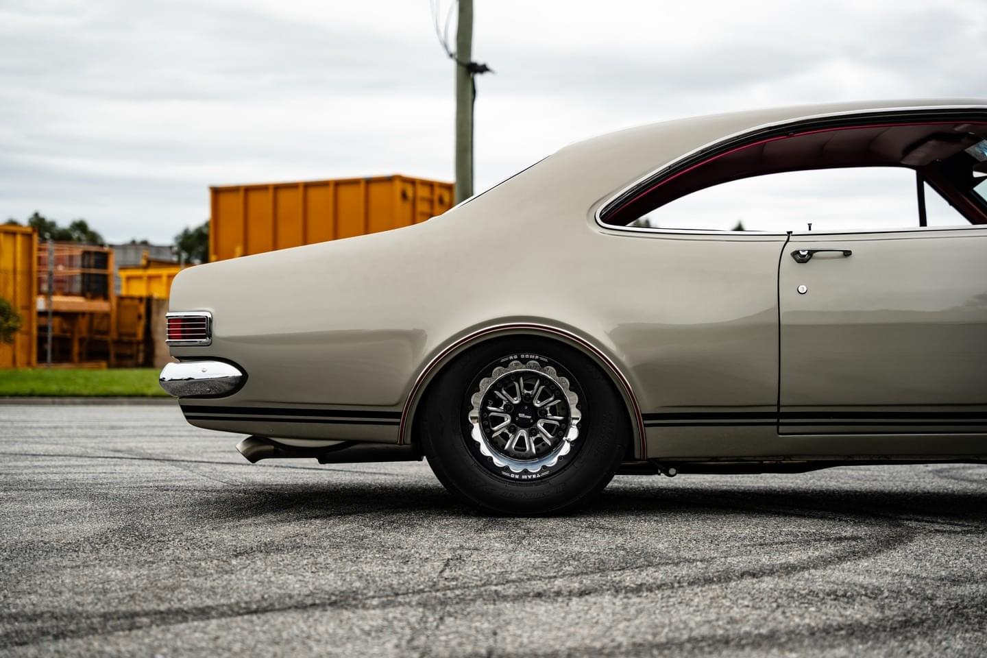 • Silver mink red trim • Blown dart 350 SBC on e85 (550hp) • Brand new 1000hp th400 box with 3500 stall - built by elite automatics • Tubbed to the rails with 255/65/15 • RC COMP 15x9 single bead lock rears • RC COMP 17x3.5 front runners • 255/65/15 Mickey Thompson ET Streets • Custom race products 9" housing (clear coated to keep the raw finish) • 35 spline billet full floating axles • Strange 35 spline wavetrac center 3:7 ratio • Wilwood front & rear disc brakes • Gazard bros anti roll bar • Gazard bros mono leaf setup • Gazard bros adjustable rear coilovers • Gazard bros adjustable front coilovers • Billet custom 1 piece tail shaft • 3.5" custom stainless exhaust • Gonzo spiral mufflers • Air controlled valves dumping the exhaust before the diff (open - close) • High flow magnaflow mufflers at the rear of car • Custom 120L fuel cell under rear parcel shelf leaving complete boot space • Speedflow in tank EFI pump • All speedflow lines, filters and fittings throughout whole car • RTS transmission overflow • B&M hi-tek trans cooler with fan • Bare metal / wire brushed whole underbody, painted black stone guard before assembly • Parachute mount • Aeroflow billet pistol grip shifter • Brand new winners trim installed by Trim-FX on the gold coast • All brand new chromed interior parts • Brand new bluetooth retrofit head unit. • Brand new kicker speakers through out ( all hidden ) • Brand new kicker sub and amp in boot • Bliss custom billet bonnet hinges • Custom reverse cowl bonnet built by Alfa Motorsport
