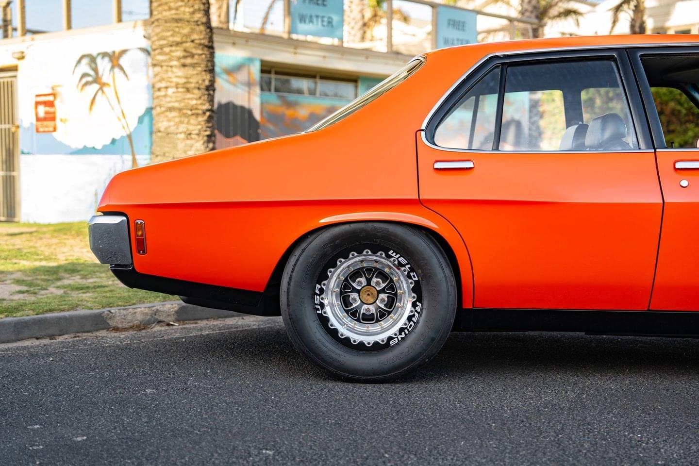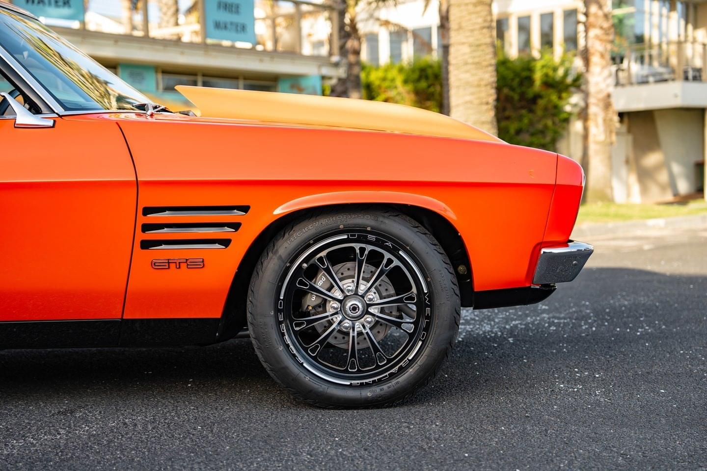 Finished in Tangerine with iconic Lone O’Ranger stripes, this Monaro is an unmistakable headturner, combining classic nostalgia with modern muscle. Under the bonnet lives a Dart Block 427 pumping out 680 horsepower on Pump 98, backed by a manualised Turbo 400 and 5200 high stall. Power gets down through the tough rear end consisting of a 9 Inch diff with truetrac centre, 4.11 gears and strange axles.